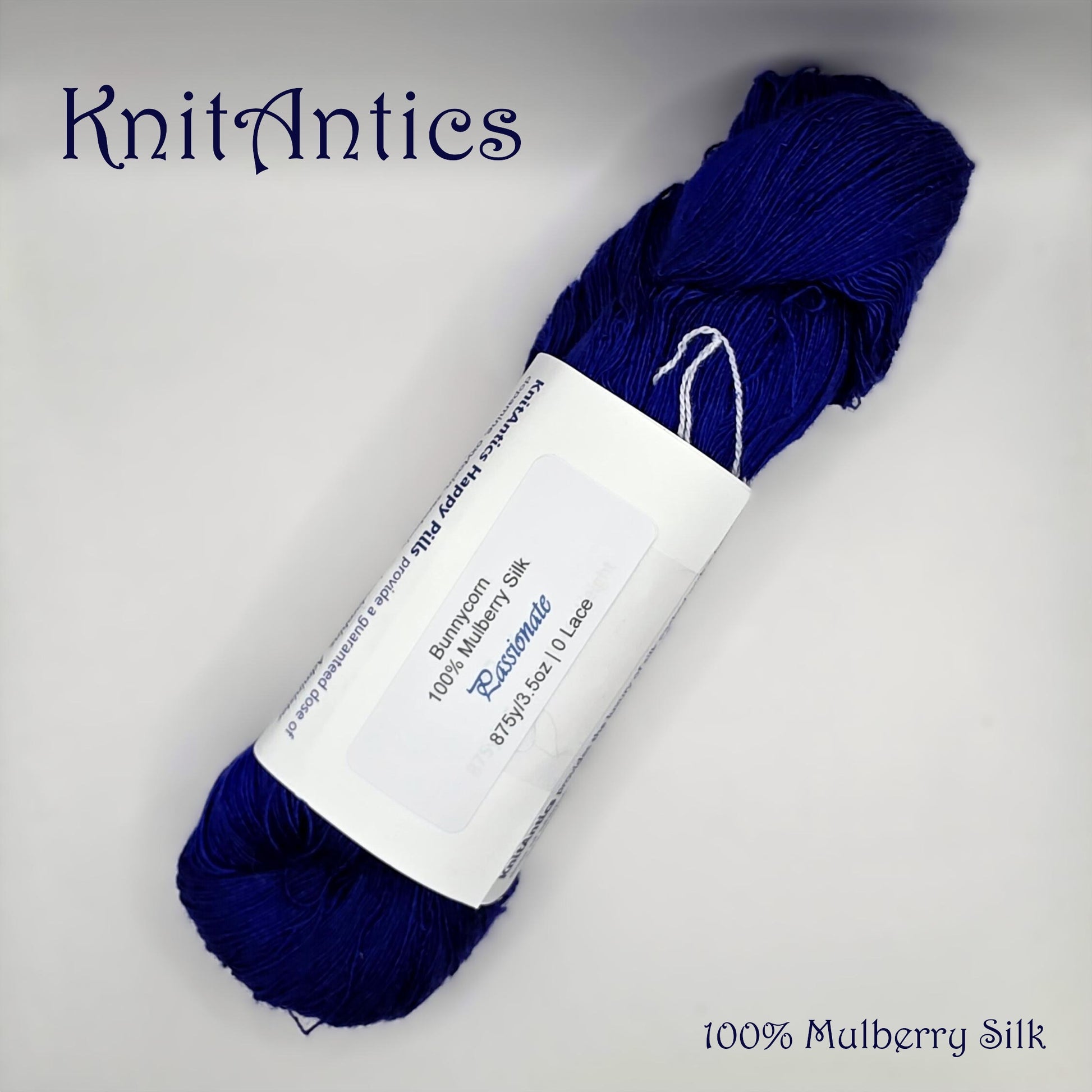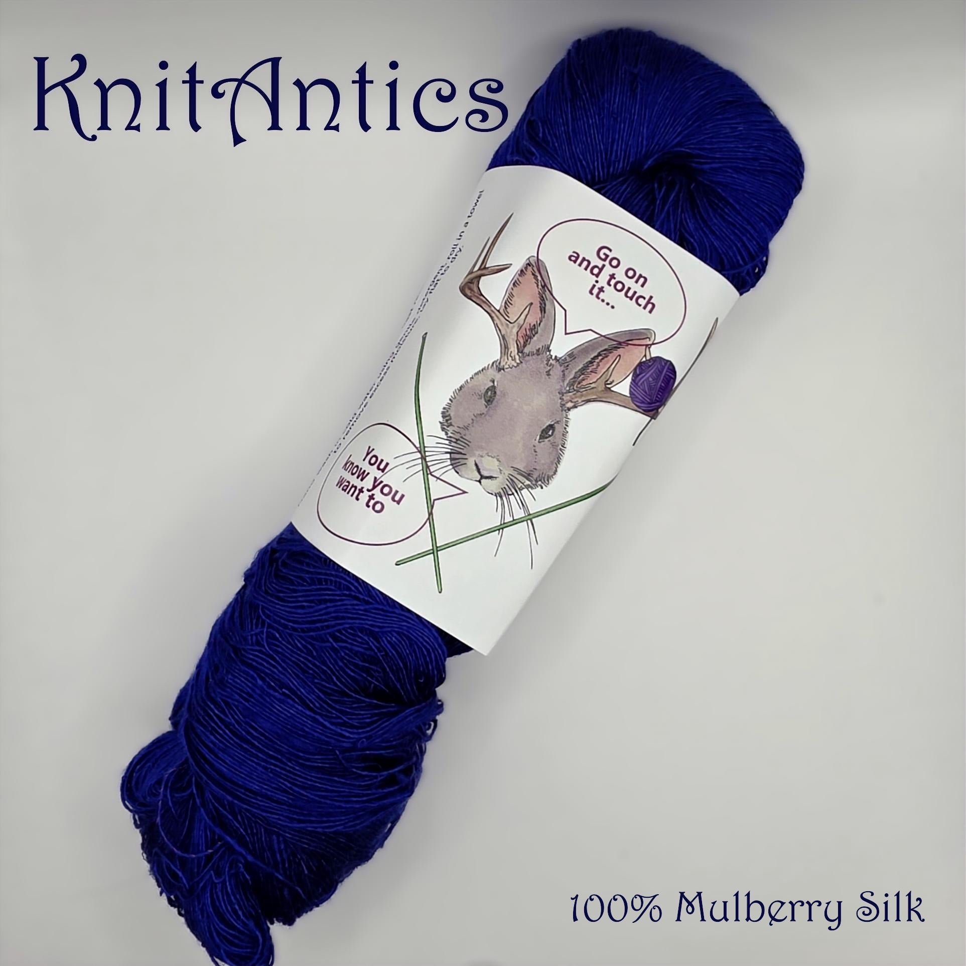 This yarn is created from 100% mulberry silk spun from long fibers remaining after the primary reeling process. The deep blue-purple color is rich and engaging, hand-dyed to perfection using traditional techniques.