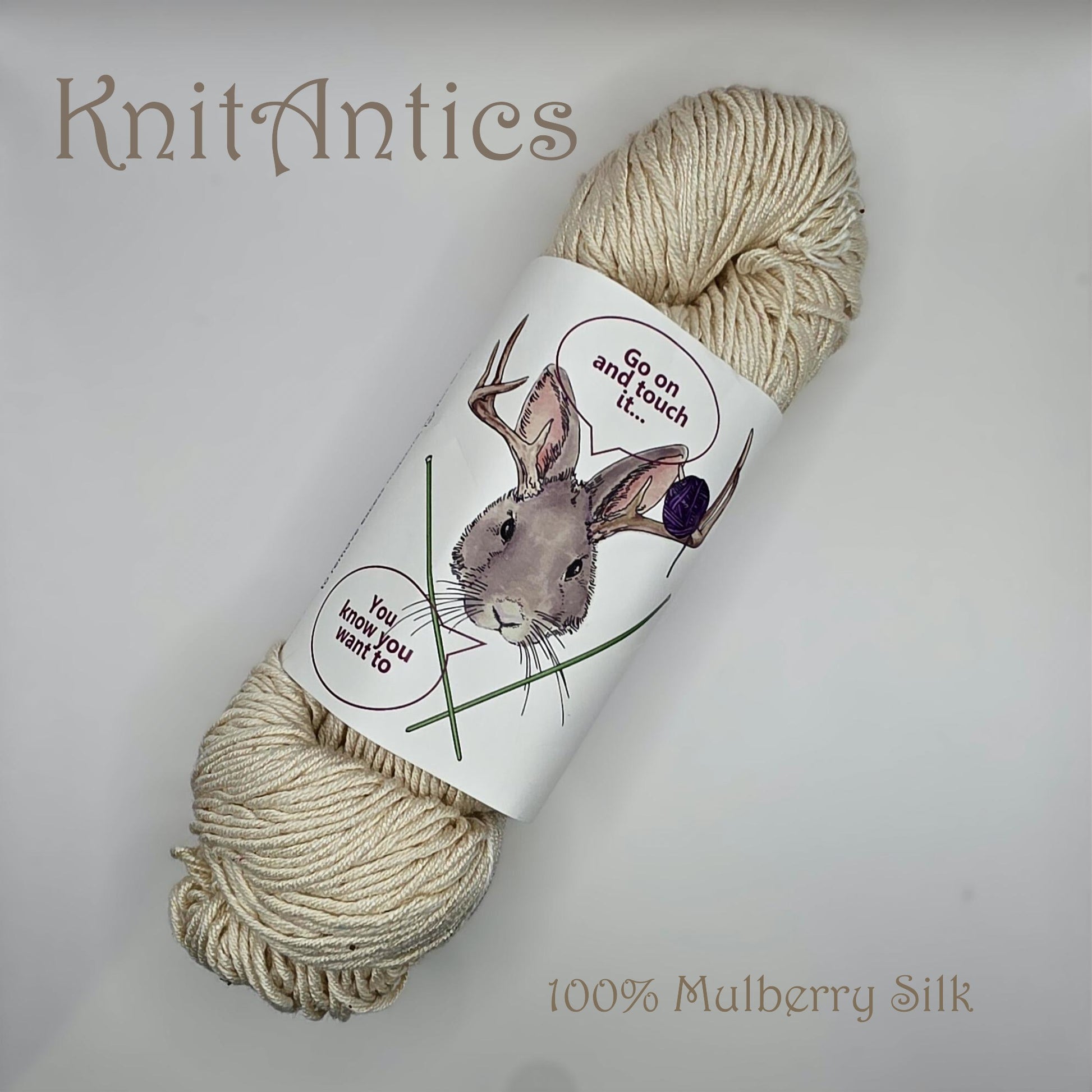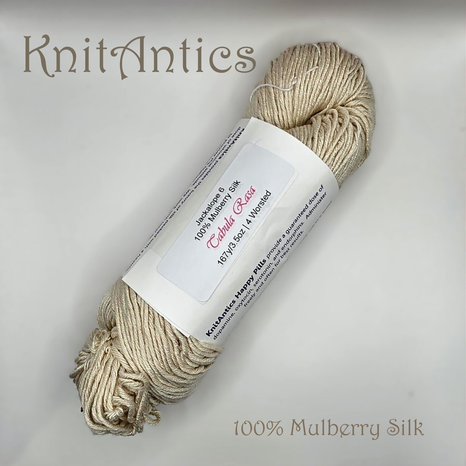 This yarn is created from 100% mulberry silk spun from the longer fibers remaining after the primary reeling and spinning processes. The natural color awaits your dye or stands as a neutral color to complement your creativity. Traditional dyeing techniques are used to create this limpid colorway.